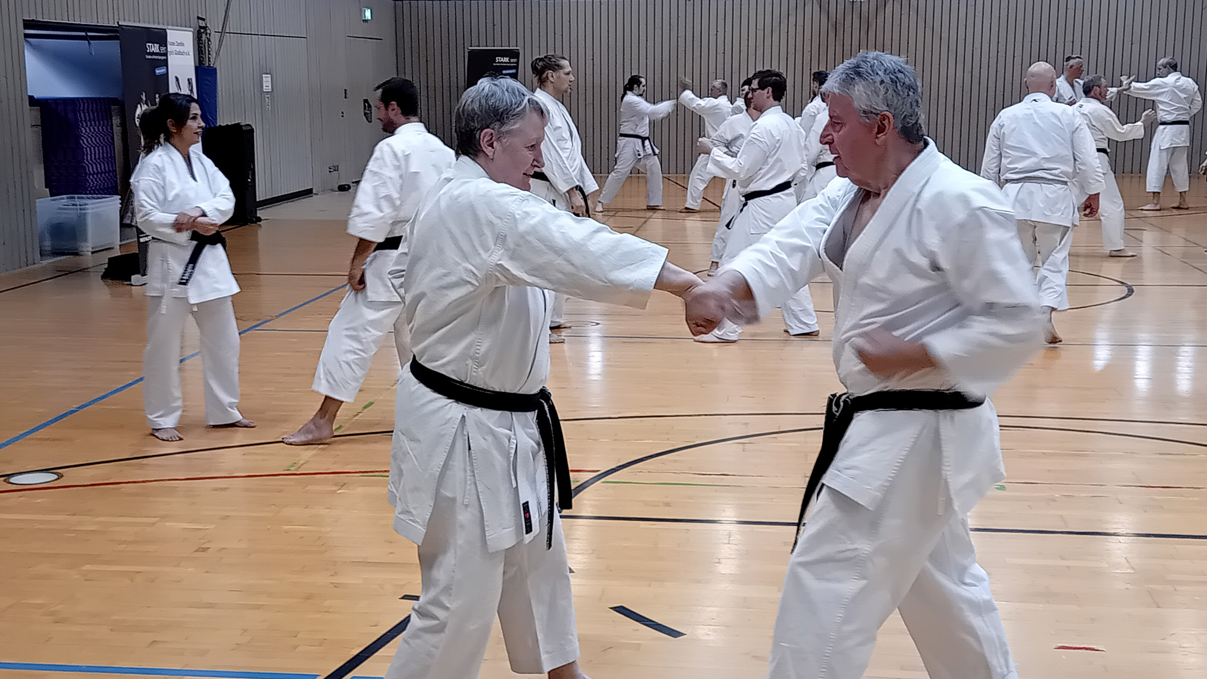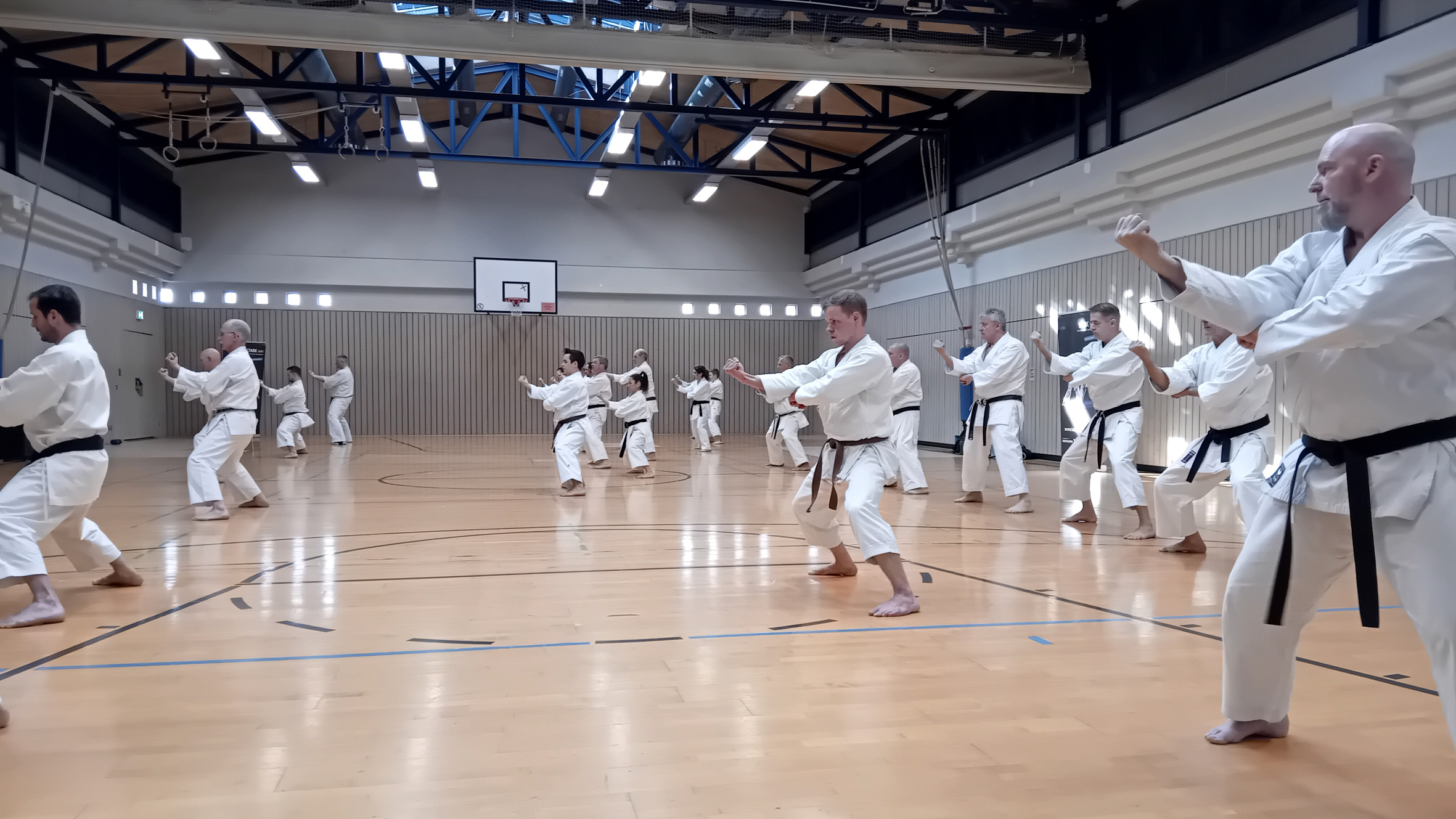 Seit vielen Jahren schon erfreut sich die Shotokan-Reihe des KDNW großer Beliebtheit. Mit den regelmäßigen Lehrgängen werden interessierten Karatekas aus ganz NRW ausgewählte Shotokan-Themen von hochrangigen KDNW-Referenten auf sehr interessante Art und mit vielen neuen Ideen nähergebracht. Am Sonntag, den 9. März 2025, gastierte die KDNW Shotokan-Reihe nun zum dritten Mal im Dojo von Karate-Zanshin Bergisch Gladbach e.V., wo Sensei Hardy Berscheid (6. Dan) einen interessanten und gut durchdachten Lehrgang zum Thema Tekki-Sandan vorbereitet hatte. Trotz sommerlicher Temperaturen und strahlendem Sonnenschein nahmen 25 Teilnehmerinnen und Teilnehmer an dem Lehrgang teil.