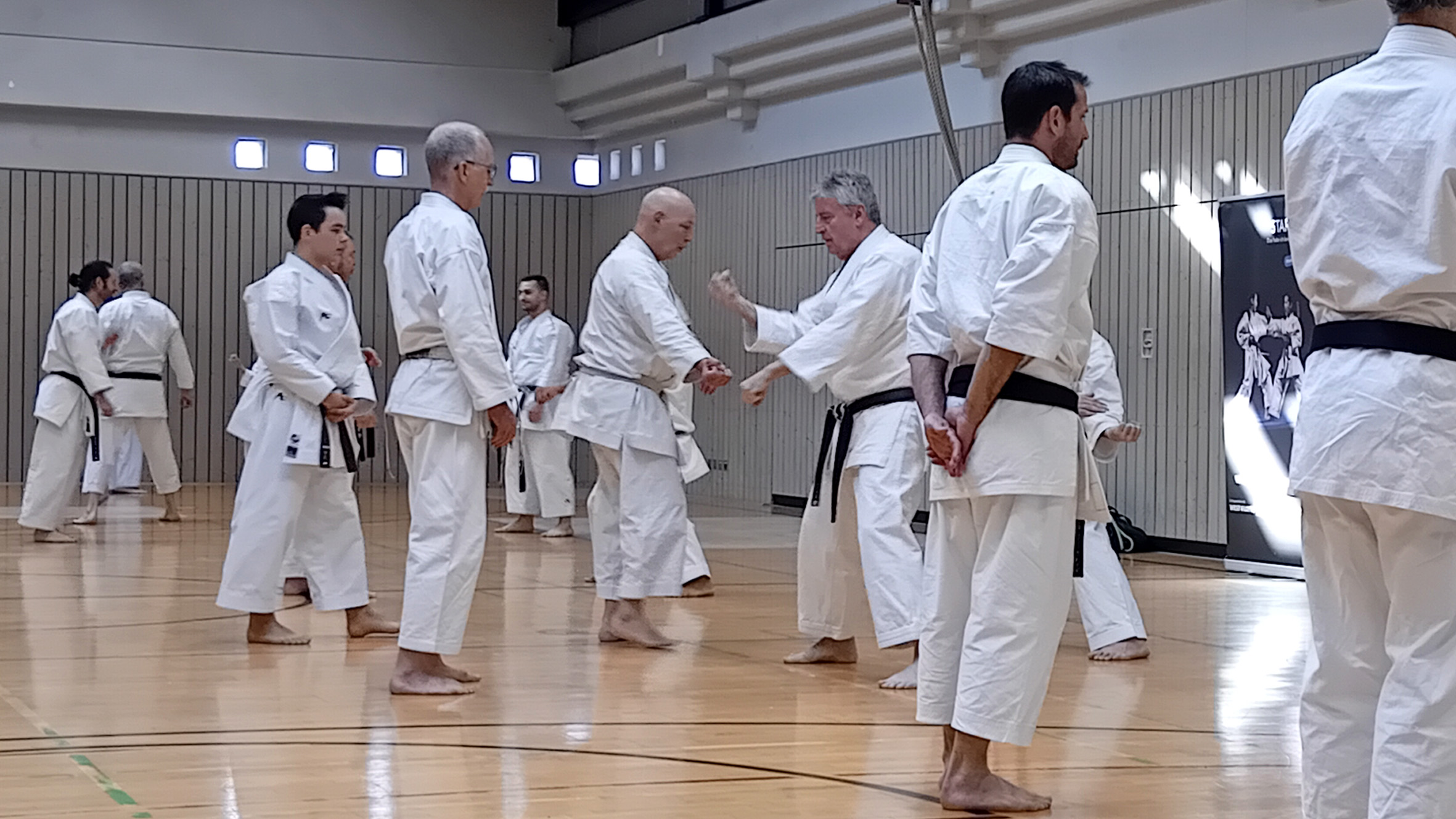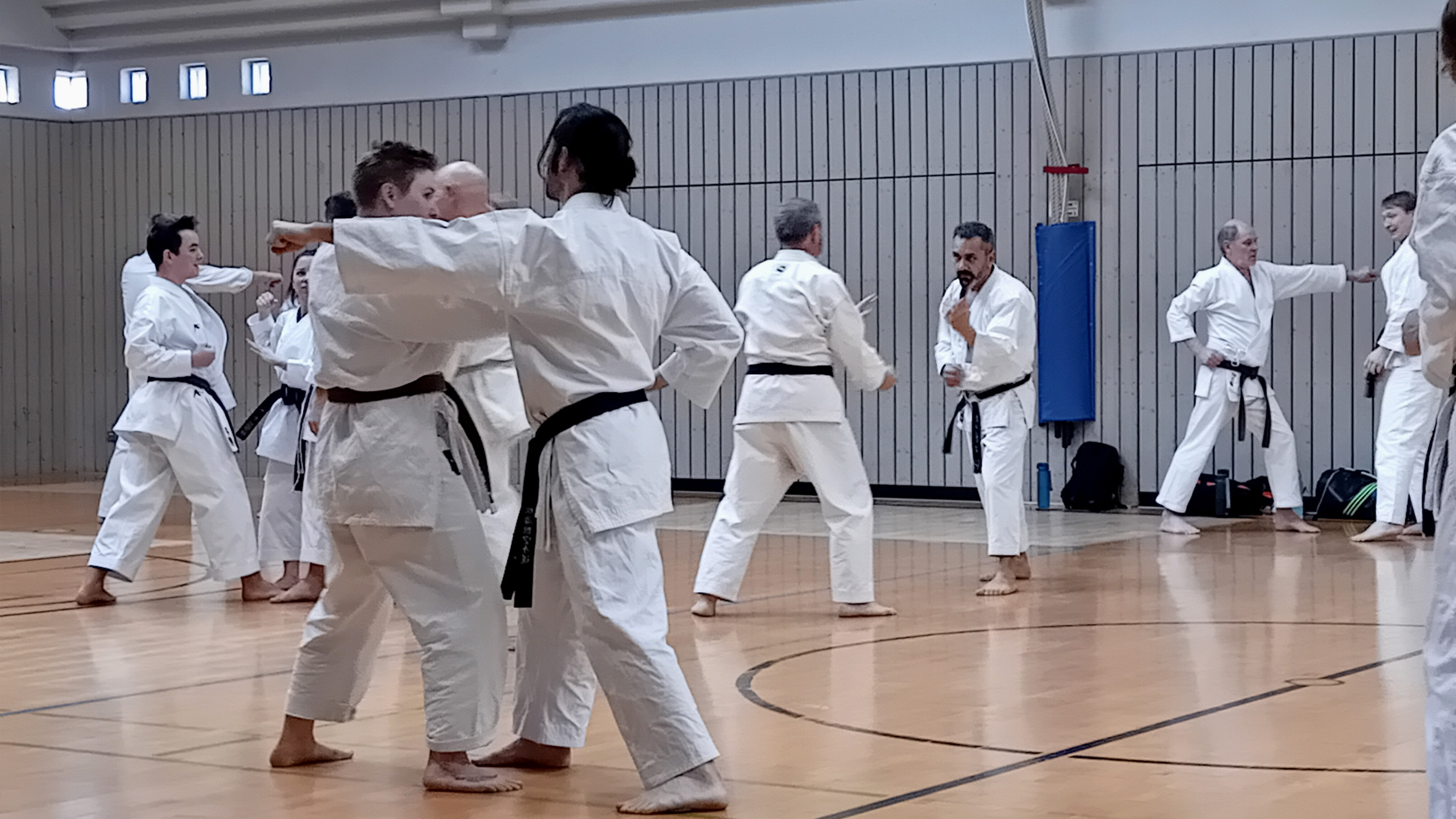 Mit der neu erlangten Sichtweise auf Technik, Ablauf und Idee der Kata, zeigten die abschließenden Kata-Läufe klare Verbesserungen und deutlich mehr Energie. Nach 2 Stunden beendete Sensei Berscheid den Lehrgang mit einem kurzen Résumé und der Gelegenheit für Fragen und Gespräche.