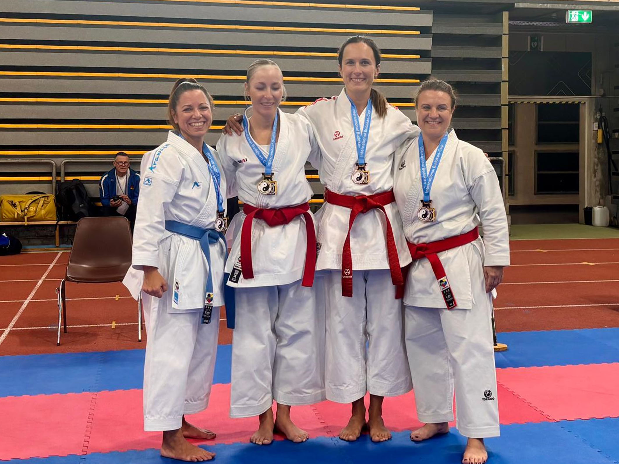 Deutlich besser lief es für Michele´s Mutter Sara Steverding, die in ihrer Kategorie Masterclass 35+ Kata Female hier in Dortmund ihre ersten beiden Kämpfe durch sehr präzise und energiegeladene Katas mit klaren 5:0 Siegen durchlief. Im Finale aber traf Sara auf die 10 Jahre jüngere und sehr starke Sarah Agte vom USC Duisburg, die sich trotz Sara´s beeindruckender, neuer Wettkampfkata den Sieg in der 35+ holte. Sara erklärt nach dem Wettkampf lächelnd: „Sarah ist eine ganz tolle und liebe Athletin, ein Ausnahmetalent, da darf man verlieren. Ich bin 2.! Eins meiner Ziele war, hier die Suparimpei fehlerfrei zu laufen, und das habe ich geschafft! Für mich ist das auch ein Sieg!“ Dann ergänzt sie: „Michele musste sich heute mit den Besten messen, und er hat richtig ordentlich abgeliefert. Wir sind beide sehr zufrieden aus dem Turnier gegangen."