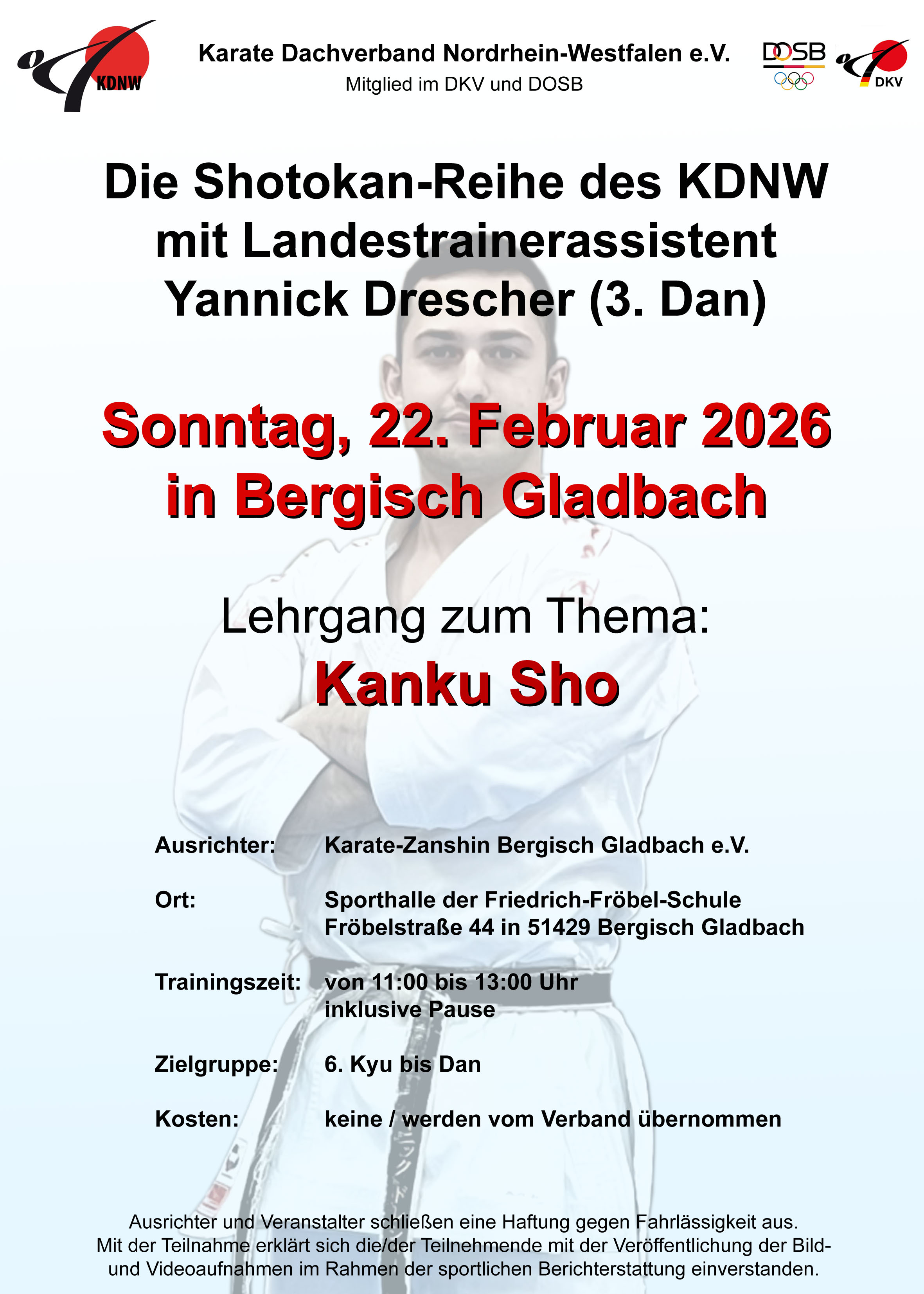 Karate-Zanshin Bergisch Gladbach e.V. richtet den 8. Shotokan-Tag des KDNW am Samstag, den 5. Juli 2025, in Bergisch Gladbach aus!