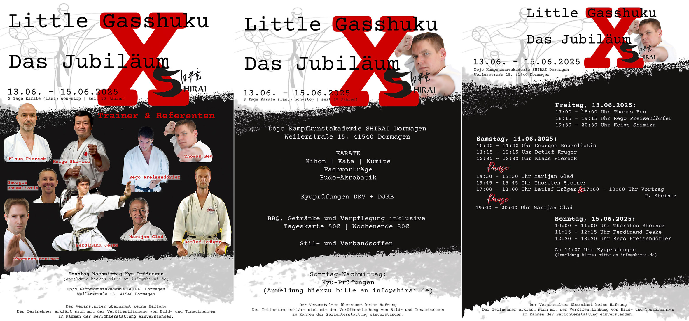 Großer, 3-tägiger Jubiläums-Lehrgang Little Gasshuku X im Dojo der Kampfkunstakademie Shirai Dormagen vom 13. bis 15. Juni 2025