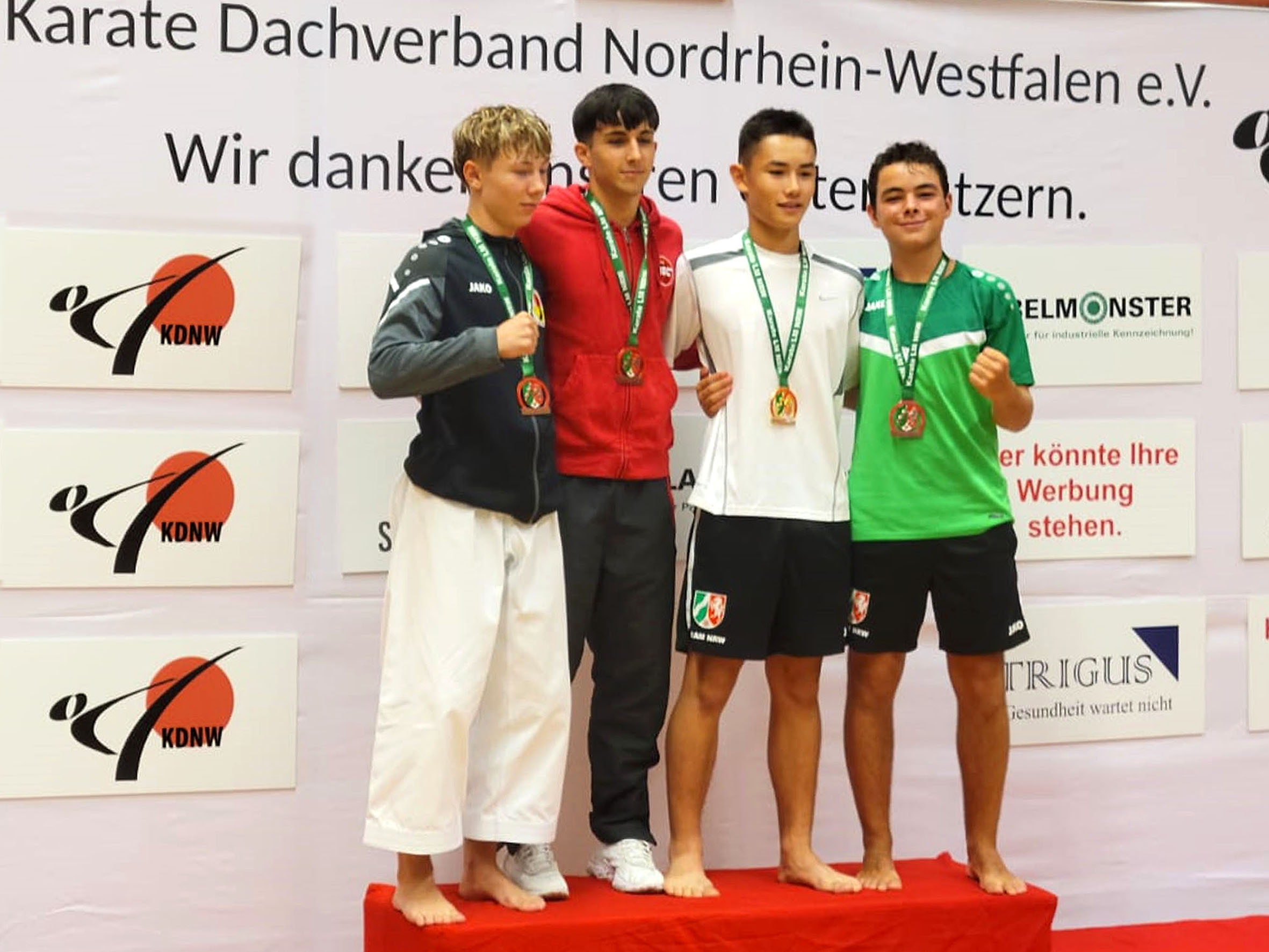 Stolze Karatekas auf dem Treppchen: Ganz rechts der zweitplatzierte Michele Steverding neben Lio Jorde-Nakamatsu, Miguel Meier und Jadon Sturm (li.)