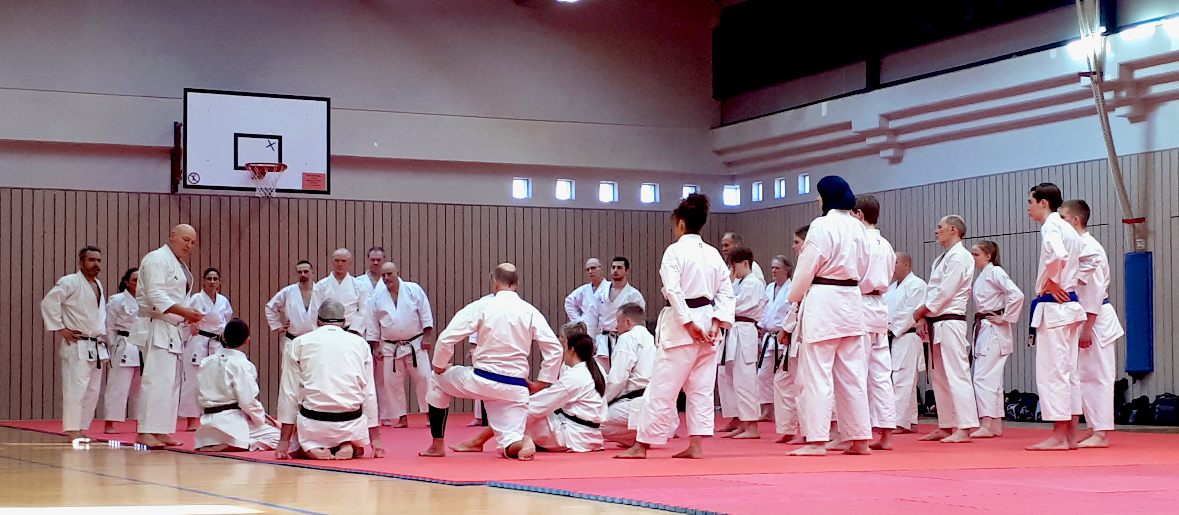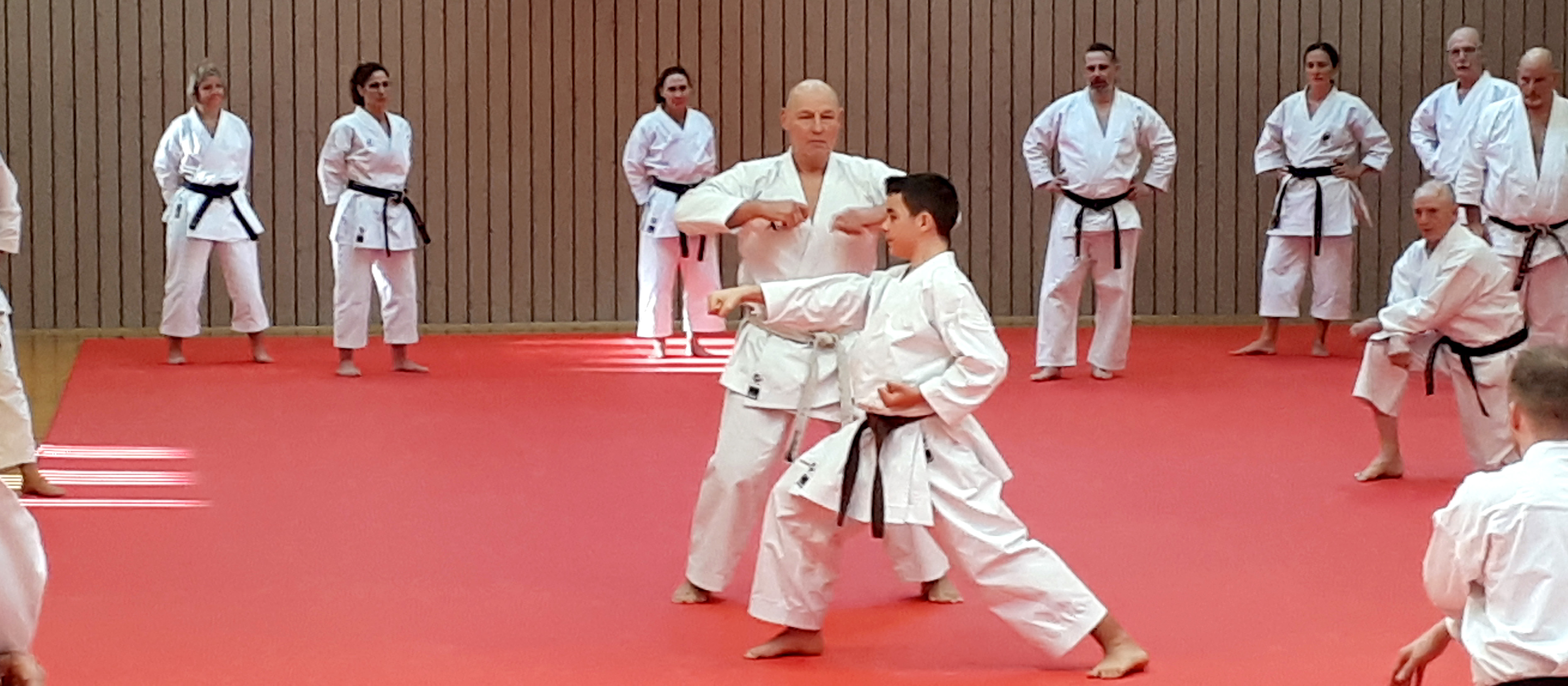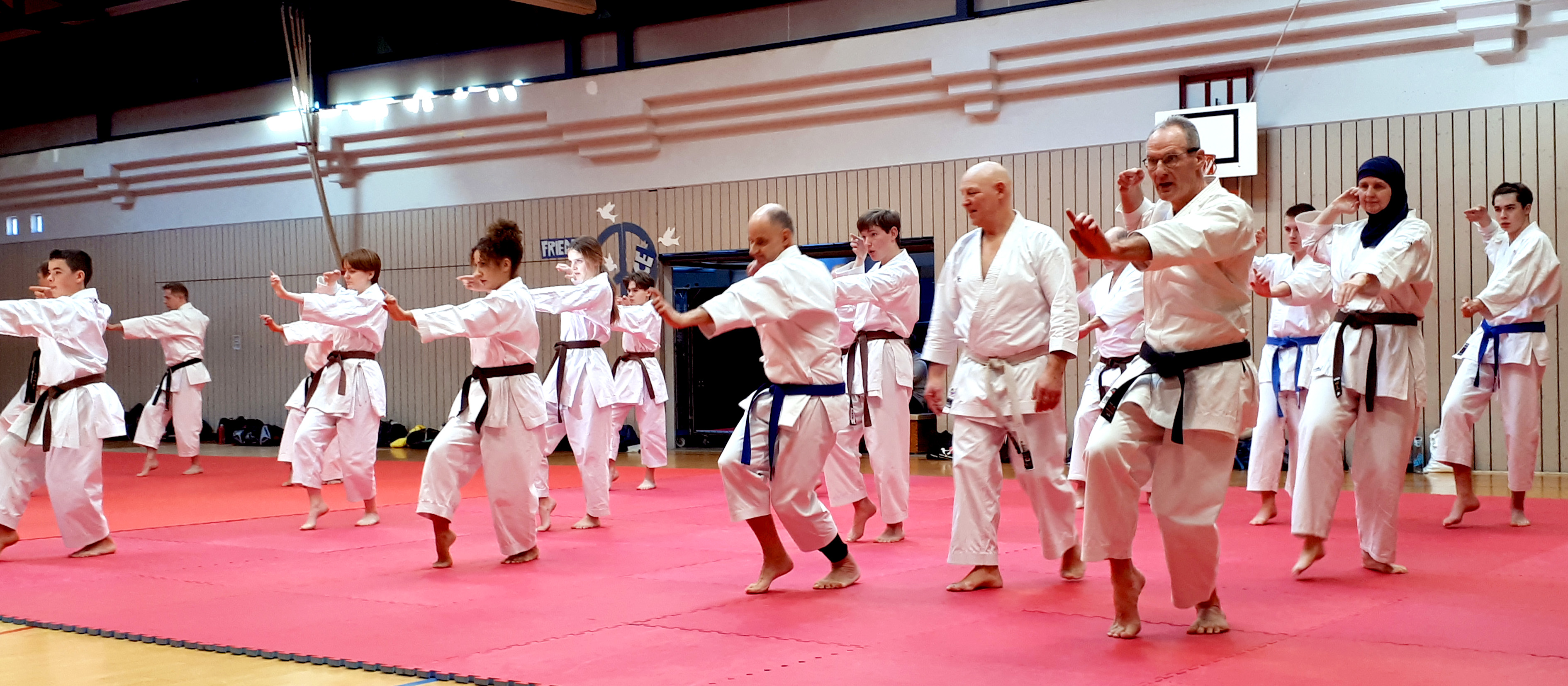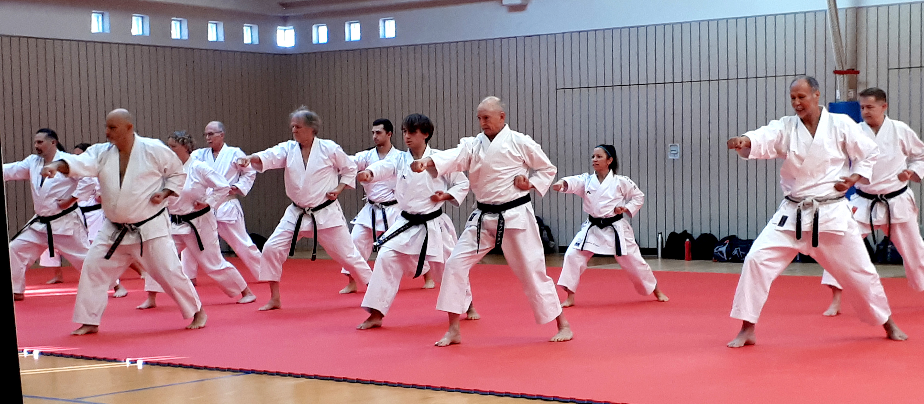 Es gab während des Lehrgangs zahlreiche „Aha!-Momente“. Hardy Berscheid weiß wie kaum ein anderer, seine Schülerinnen und Schüler mit seinen Erklärungen zu fesseln, sie für die Sache zu begeistern und zu hohen Leistungen zu motivieren. Kurze Theorie-Blöcke wurden begleitet von Anschauungsbeispielen, immer gefolgt von dem gemeinsamen Erarbeiten des entsprechenden Kata-Abschnitts mit den Teilnehmenden. Am Ende des Tages fügte sich alles zu einem großen Ganzen zusammen, als alle gemeinsam mit dem neuen Wissen im Hinterkopf die vollständige Kata liefen. Das Ergebnis war beeindruckend.