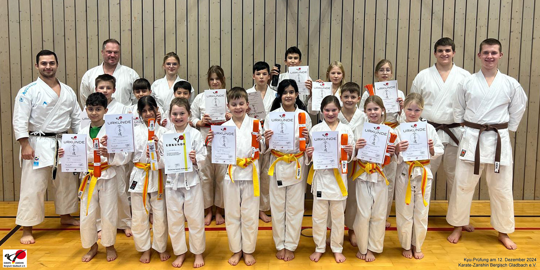 Bereits seit Ende der Herbstferien wurde in der Mittelstufe der Kinder vom Karate-Zanshin Bergisch Gladbach e.V. hart trainiert. Die Trainer Yannick Drescher (3. Dan) und Andre Langensiepen (1. Dan) sowie die Trainerin Annina Langensiepen (1. Kyu) und die neuen Trainerassistenten Jan und Luca bereiteten ihre jungen Karate-Kids auf die nächste Kyu-Prüfung (Gürtelprüfung) vor. Alle Techniken, Katas und Partnerübungen wurden immer weiter verbessert und verfeinert, bis jeder Ablauf bis ins kleinste Detail bestmöglich passte.