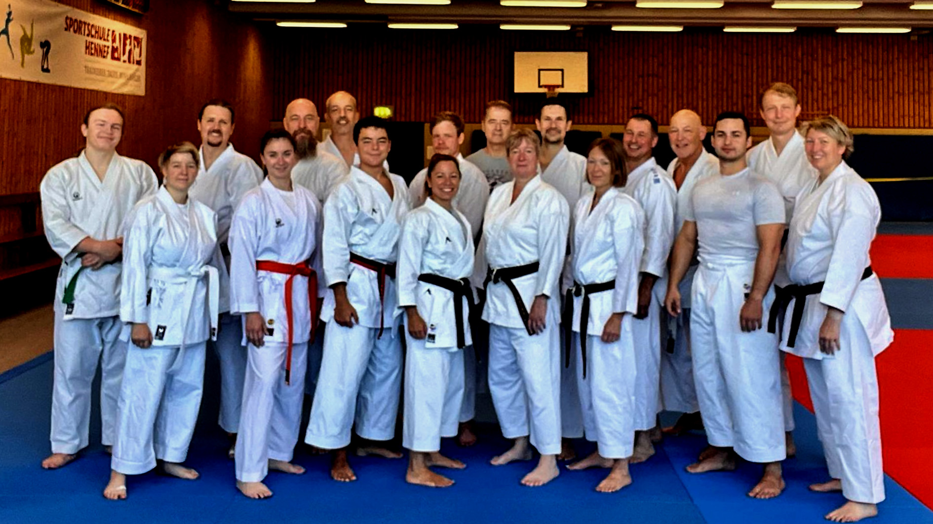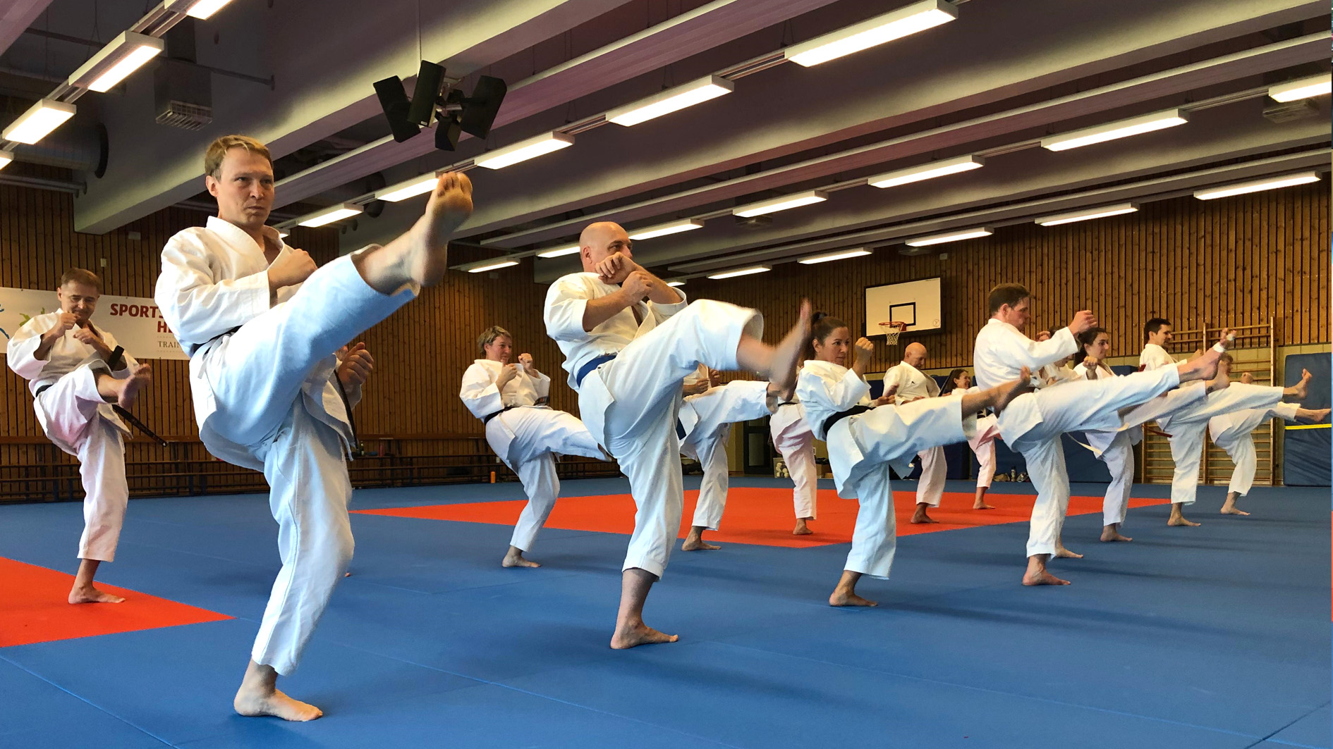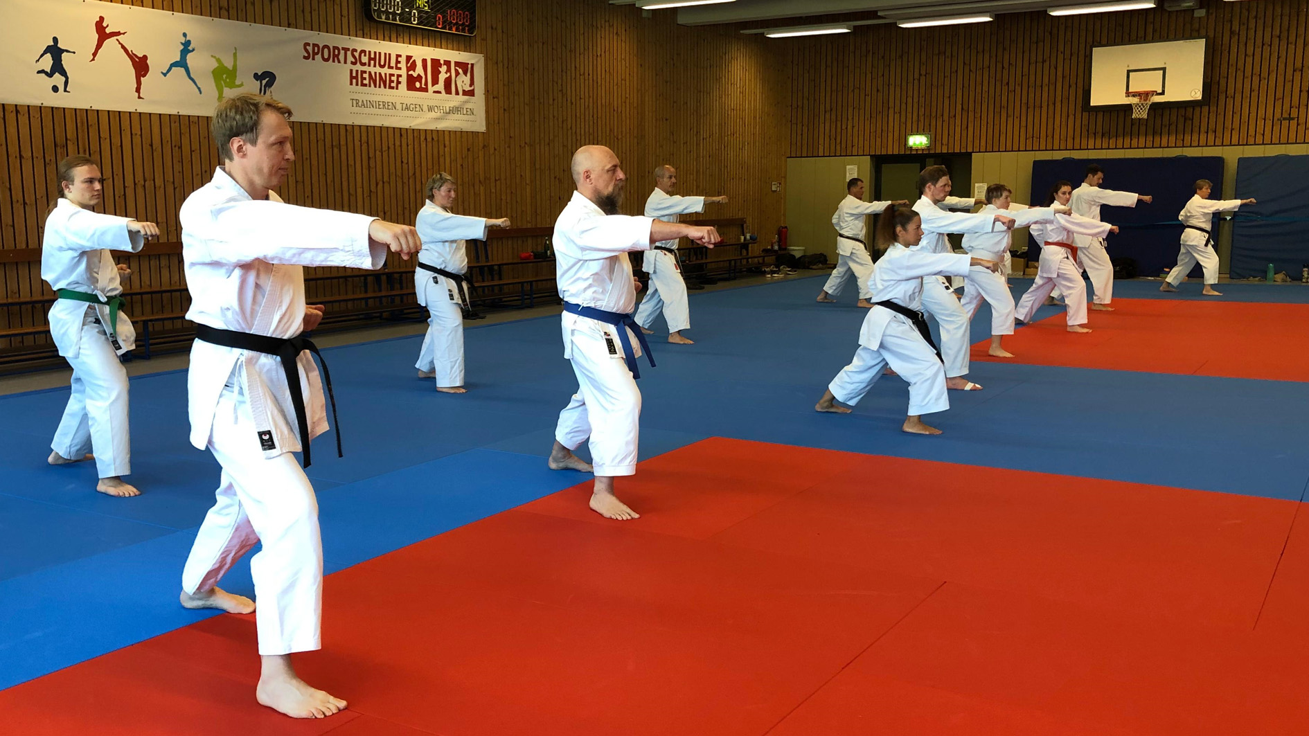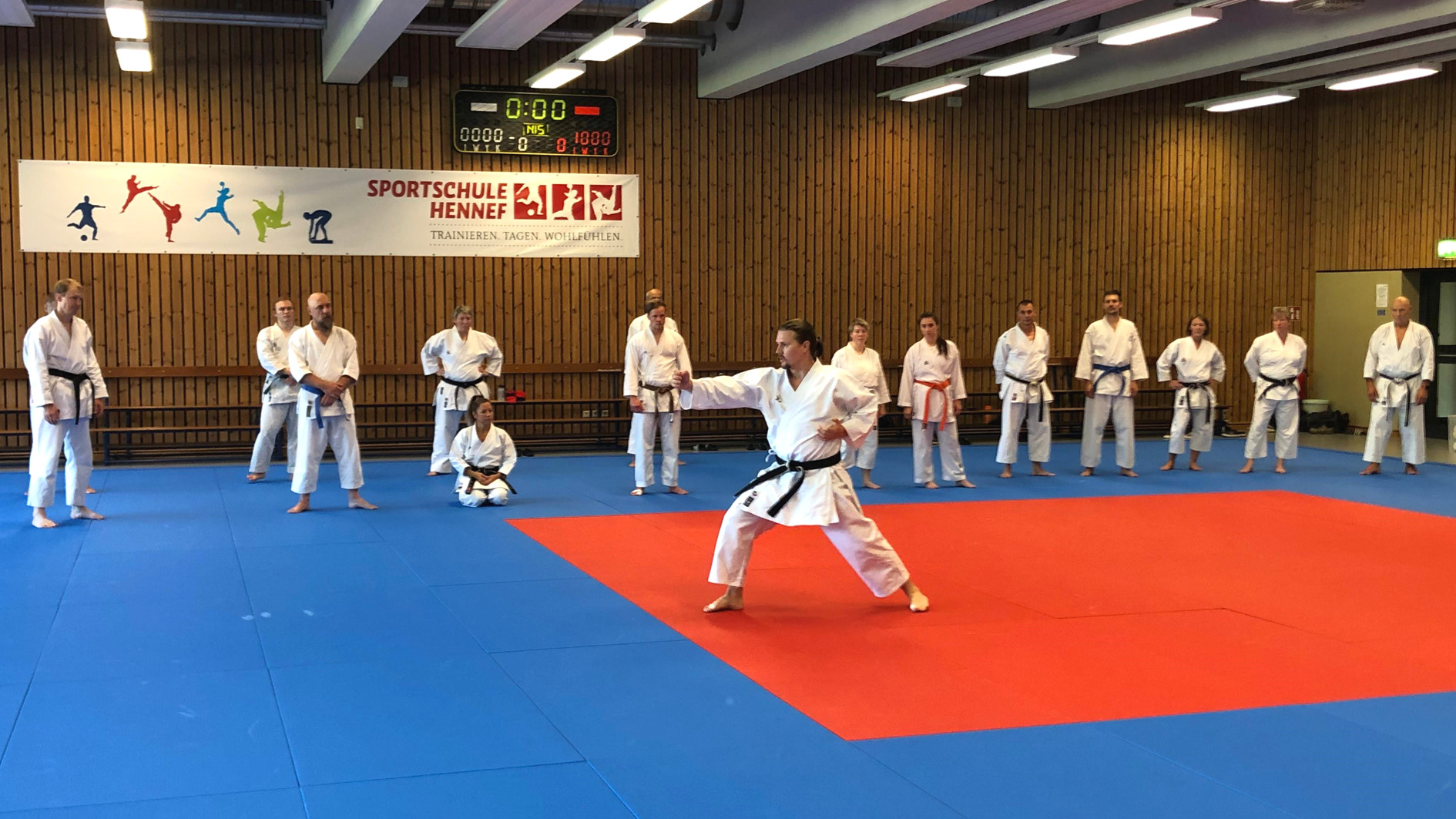 Es war ein großartiges Wochenende, als Karate-Zanshin Bergisch Gladbach e.V. vom 5. bis 7. September 2025 sein großes Zanshin-Trainingscamp 2025 in der Sportschule Hennef a.d. Sieg veranstaltete. Gut 20 erwachsene Mitglieder, allen voran Zanshin-Cheftrainer Hardy Berscheid (6. Dan, KDNW-Leistungssportreferent), Michael Laudenberg (4. Dan, C-Trainer Leistungssport) und Yannick Drescher (3. Dan, B-Trainer Leistungssport), hatten sich für den lange erwarteten, mehrtägigen Lehrgang angemeldet. Berscheid, Laudenberg und Drescher übernahmen die Leitung der breit gefächerten Kurse und Lehrgänge rund um das Shotokan-Karate. Aber auch Freizeit- und Team-Building-Events standen auf dem gut gefüllten Stundenplan, sowie gemeinsame Mahlzeiten im bestens ausgestatteten Speisesaal der Sportschule und gesellige Abende im Bistro der Anlage. Die Nächte verbrachten man sehr komfortabel im Sporthotel auf dem Gelände.